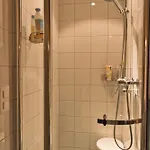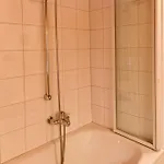 2 badeværelser med et badekar, et bidet og en bruser samt en hårtørrer og håndklæder som er til rådighed.